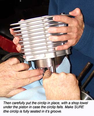 - When it comes time to remove the pistons, first place rags under the pistons to eliminate the possibility that your wrist pin circlips might fall into the crankcase.